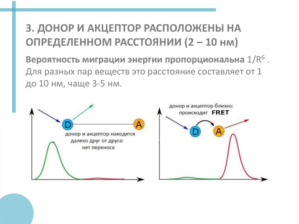 3. ДОНОР И АКЦЕПТОР РАСПОЛОЖЕНЫ НАОПРЕДЕЛЕННОМ РАССТОЯНИИ (2 – 10 нм)