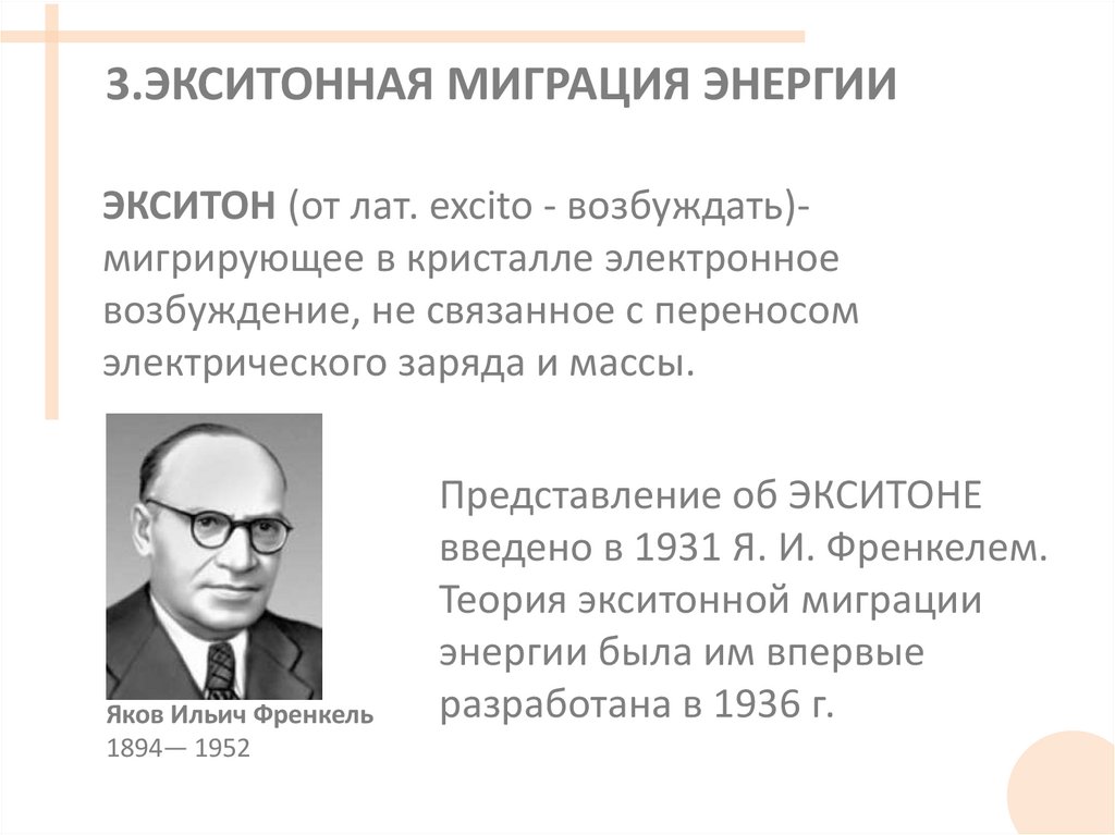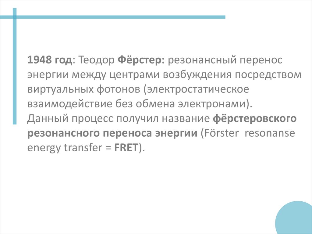 1948 год: Теодор Фёрстер: резонансный переносэнергии между центрами возбуждения посредством