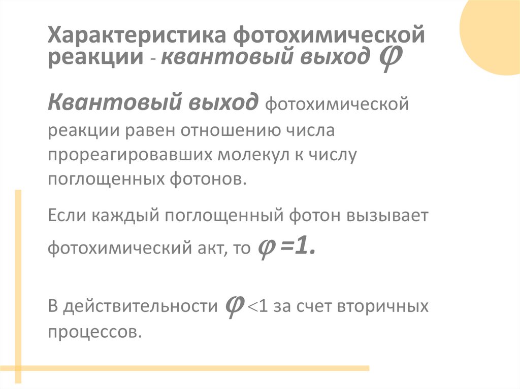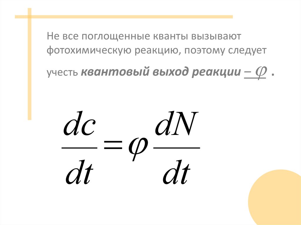 Не все поглощенные кванты вызываютфотохимическую реакцию, поэтому следует