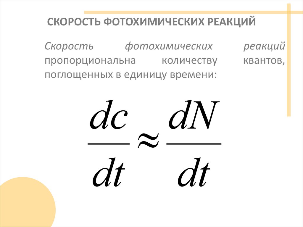 СКОРОСТЬ ФОТОХИМИЧЕСКИХ РЕАКЦИЙСкорость