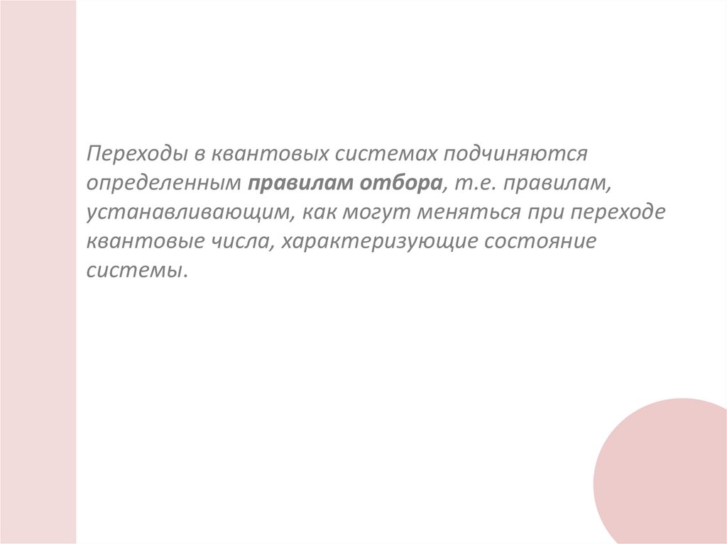 Переходы в квантовых системах подчиняютсяопределенным правилам отбора, т.е. правилам,