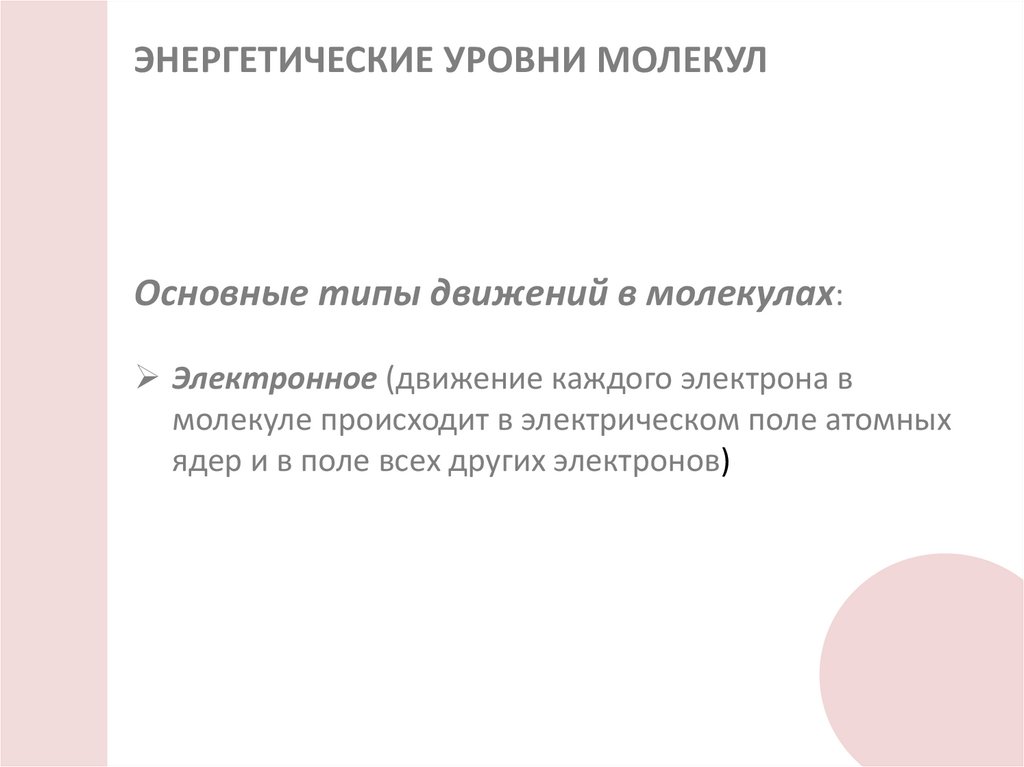 ЭНЕРГЕТИЧЕСКИЕ УРОВНИ МОЛЕКУЛОсновные типы движений в молекулах: