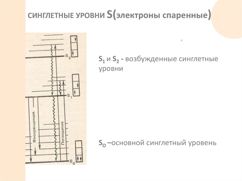 СИНГЛЕТНЫЕ УРОВНИ S(электроны спаренные)S1 и S2 - возбужденные синглетные