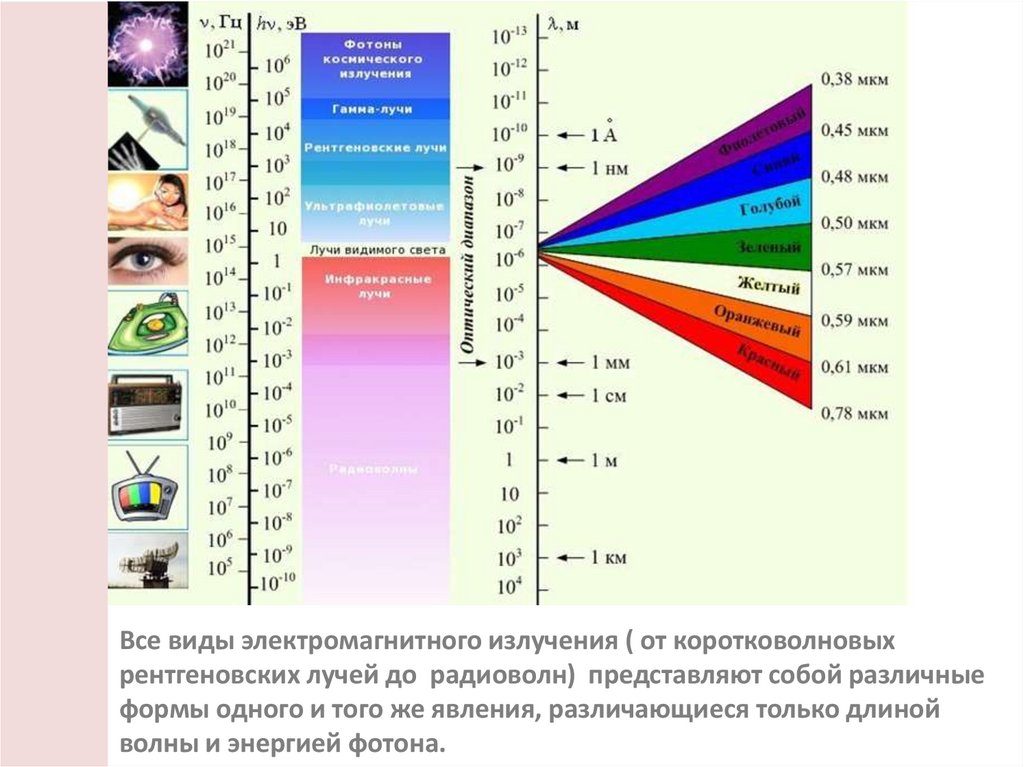 Все виды электромагнитного излучения ( от коротковолновыхрентгеновских лучей до радиоволн) представляют собой различные