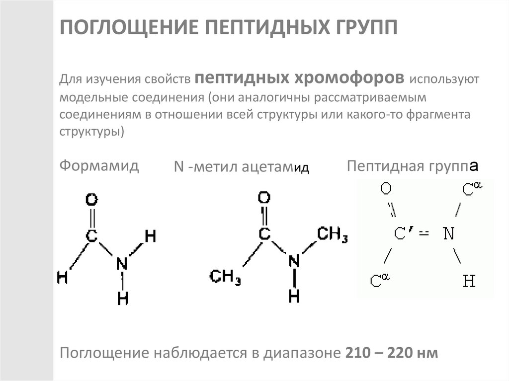 ПОГЛОЩЕНИЕ ПЕПТИДНЫХ ГРУППДля изучения свойств пептидных хромофоров используют