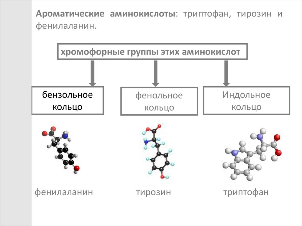 Ароматические аминокислоты: триптофан, тирозин ифенилаланин.