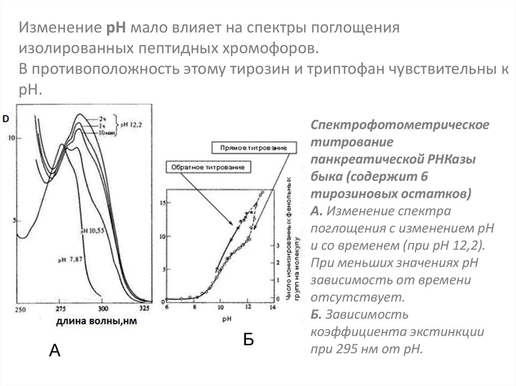 Изменение рН мало влияет на спектры поглощенияизолированных пептидных хромофоров.