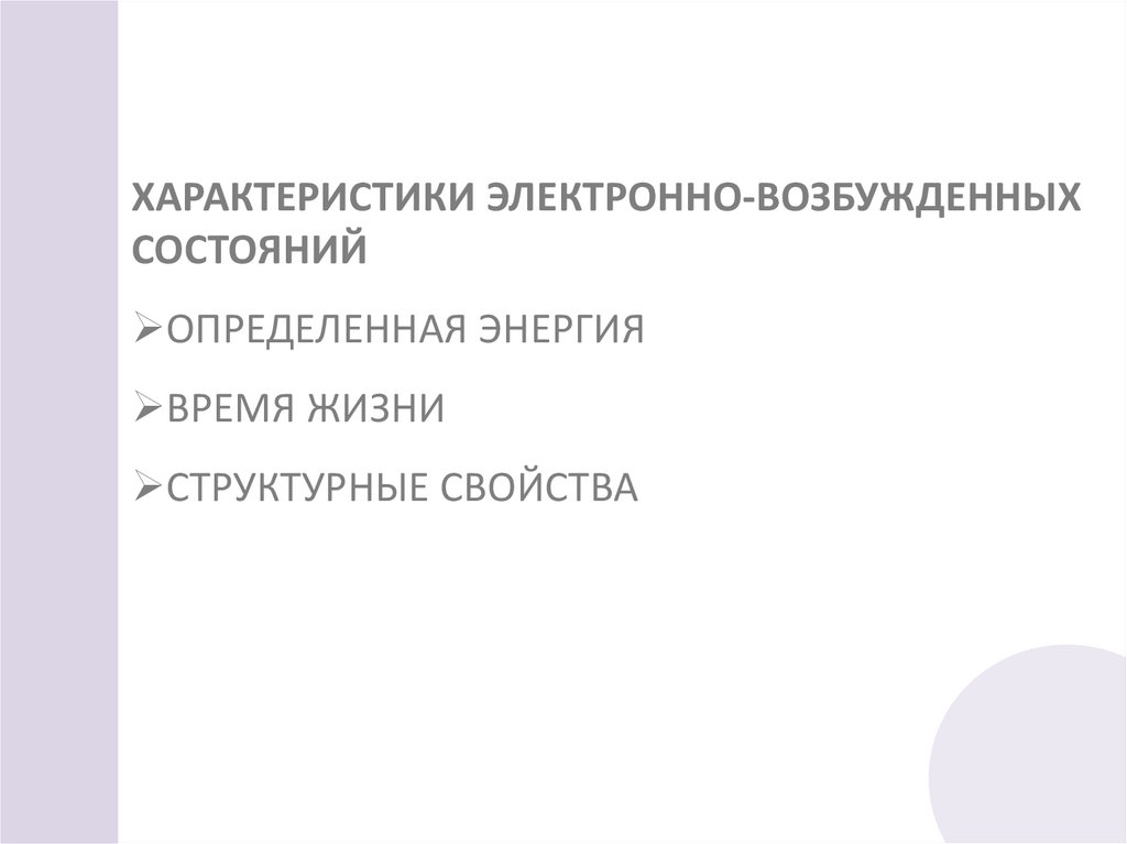 ХАРАКТЕРИСТИКИ ЭЛЕКТРОННО-ВОЗБУЖДЕННЫХСОСТОЯНИЙ
