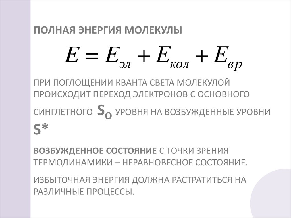 ПОЛНАЯ ЭНЕРГИЯ МОЛЕКУЛЫE Eэл Екол Евр