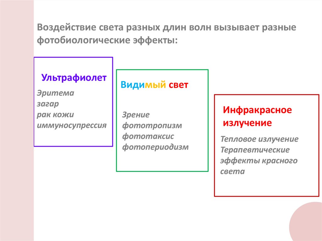Воздействие света разных длин волн вызывает разныефотобиологические эффекты: