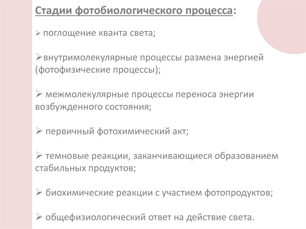 Фотобиологическим называют процесс, которыйначинается с поглощения квантов света