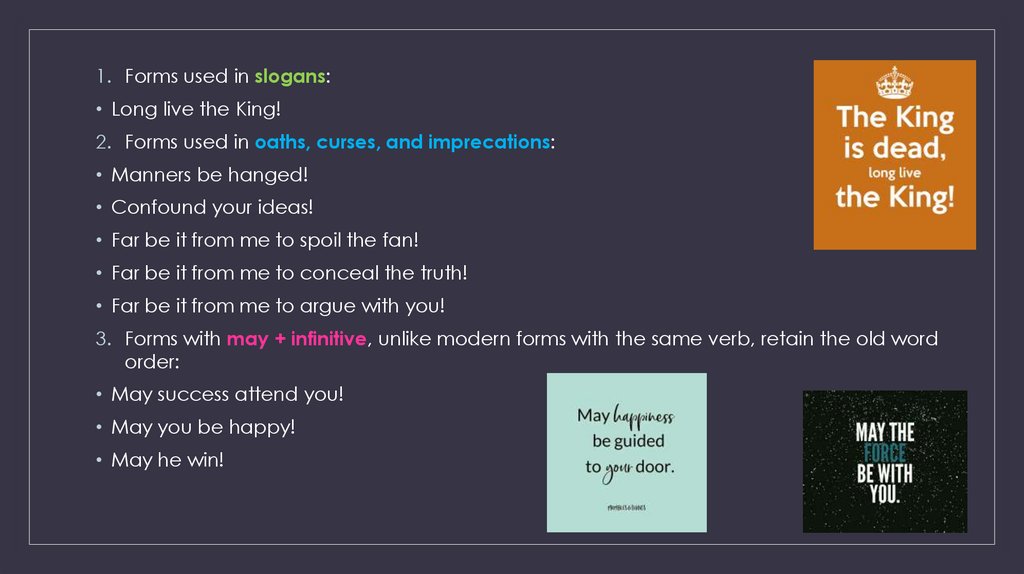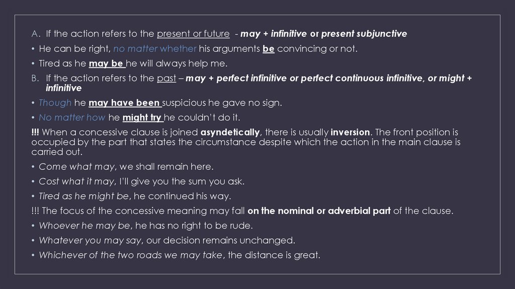 A. after the conjunction that / asyndetically - may/might + infinitive