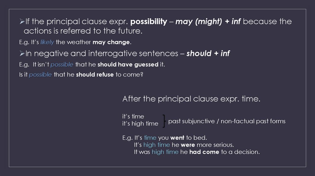 the form depends on thegeneral meaning of the principal clause: