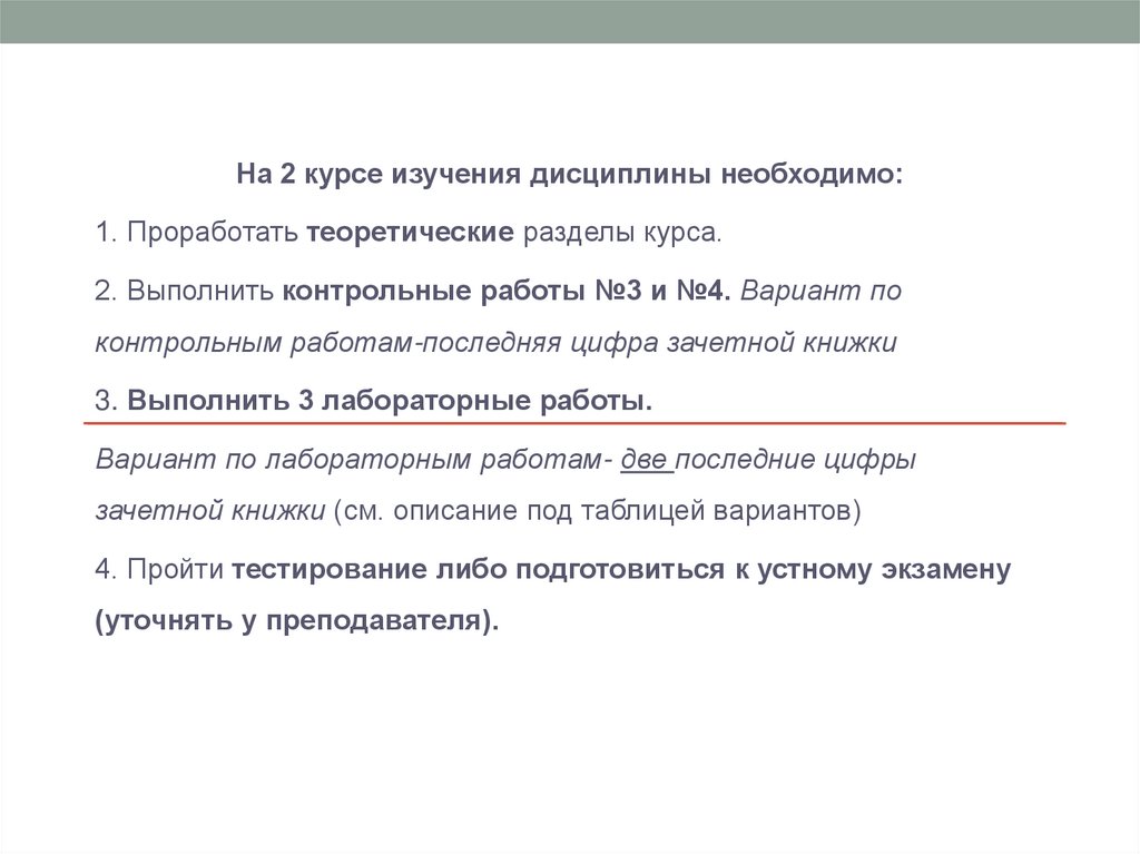 На 2 курсе изучения дисциплины необходимо:1. Проработать теоретические разделы курса.