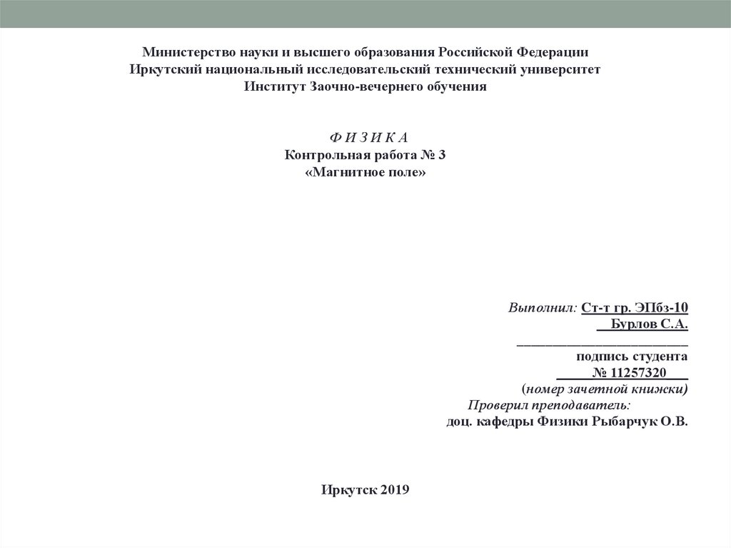Министерство науки и высшего образования Российской ФедерацииИркутский национальный исследовательский технический университет