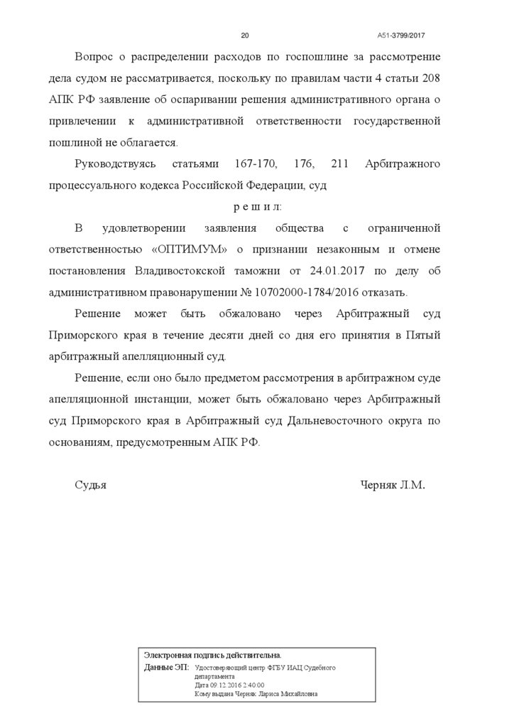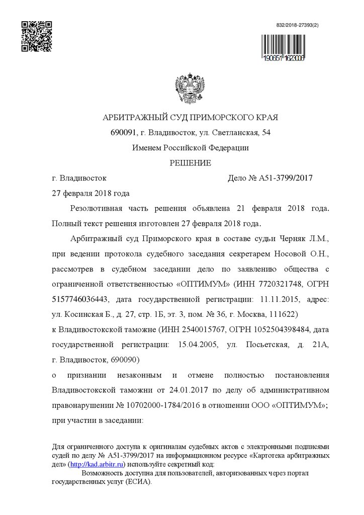суда по делу № А51-3801/2017 решение Арбитражного суда Приморского