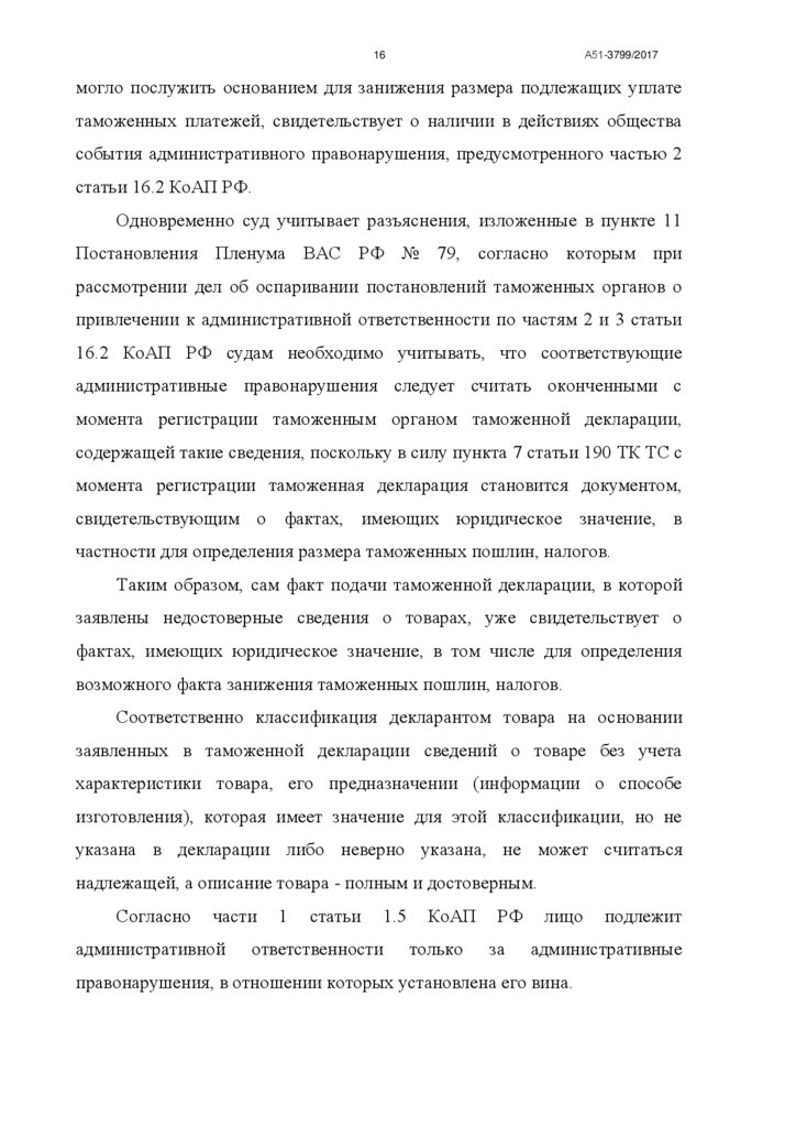 постановления Владивостокской таможни от 24.01.2017 по делу об
