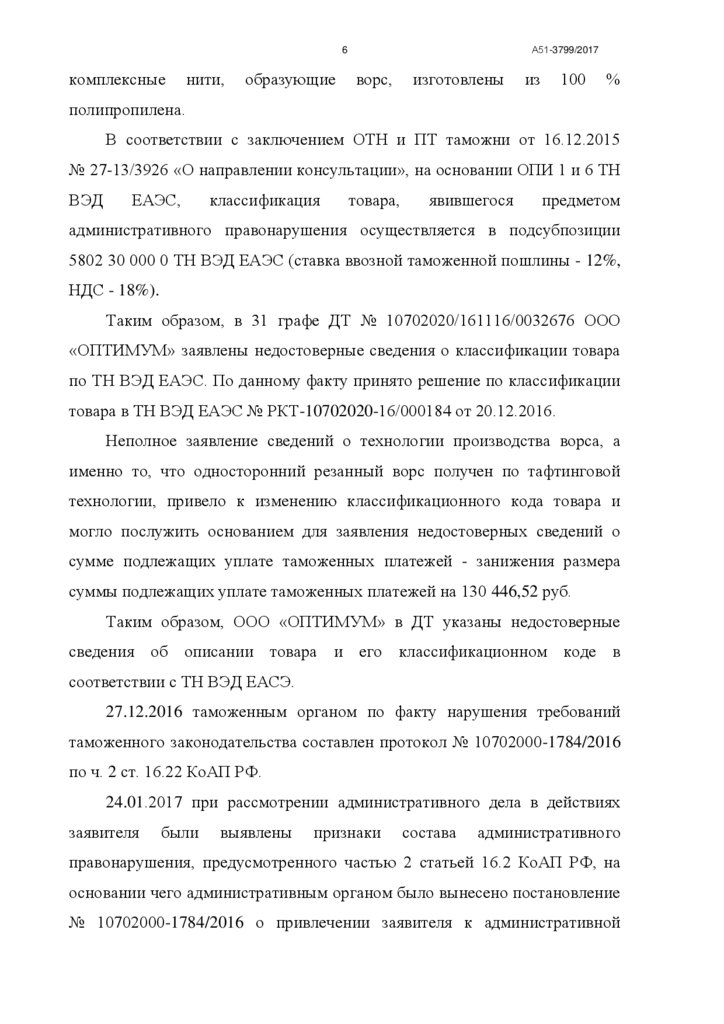 правонарушении № 10702000-1784/2016 в отношении ООО «ОПТИМУМ»;