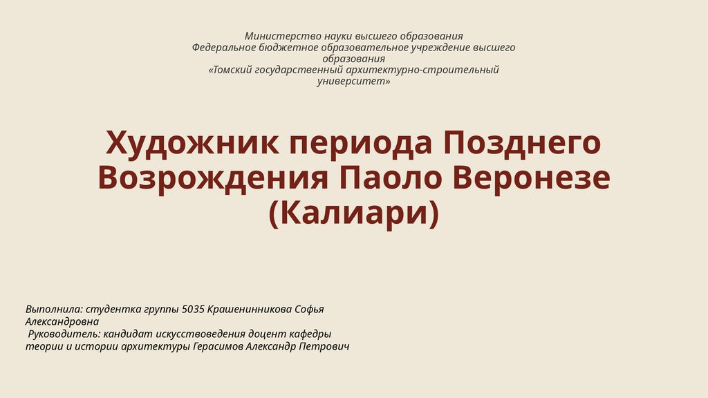 1. Творческое наследие Паоло Веронезе (Калиари), спецификаидентификации и датировки его работ, И.Г. Микайлова