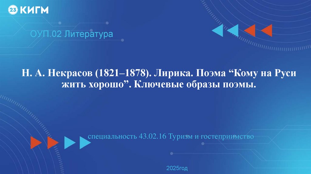 ОУП.02 ЛитератураН. А. Некрасов (1821–1878). Лирика. Поэма “Кому на Руси
