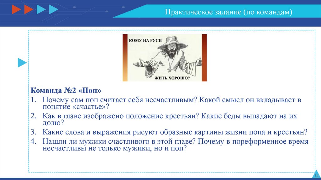1. Почему сам поп считает себя несчастливым? Какой смысл он вкладывает в