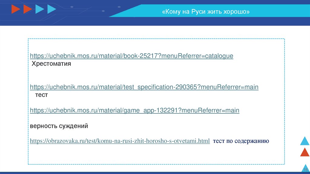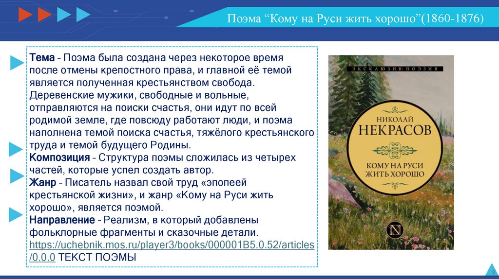 «Кому на Руси жить хорошо»https://uchebnik.mos.ru/material/book-25217?menuReferrer=catalogue