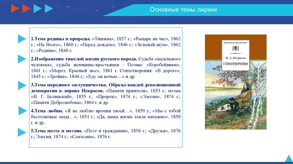 Основные темы лирики1.Тема родины и природы. «Тишина», 1857 г.; «Рыцарь на час», 1862