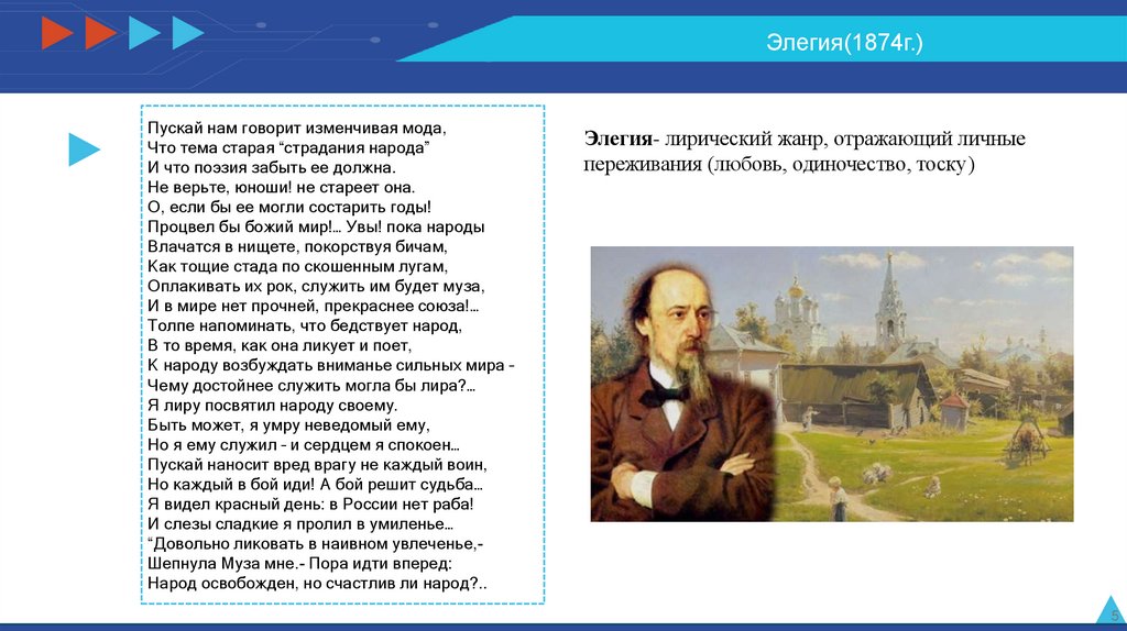 Элегия(1874г.)Пускай нам говорит изменчивая мода,