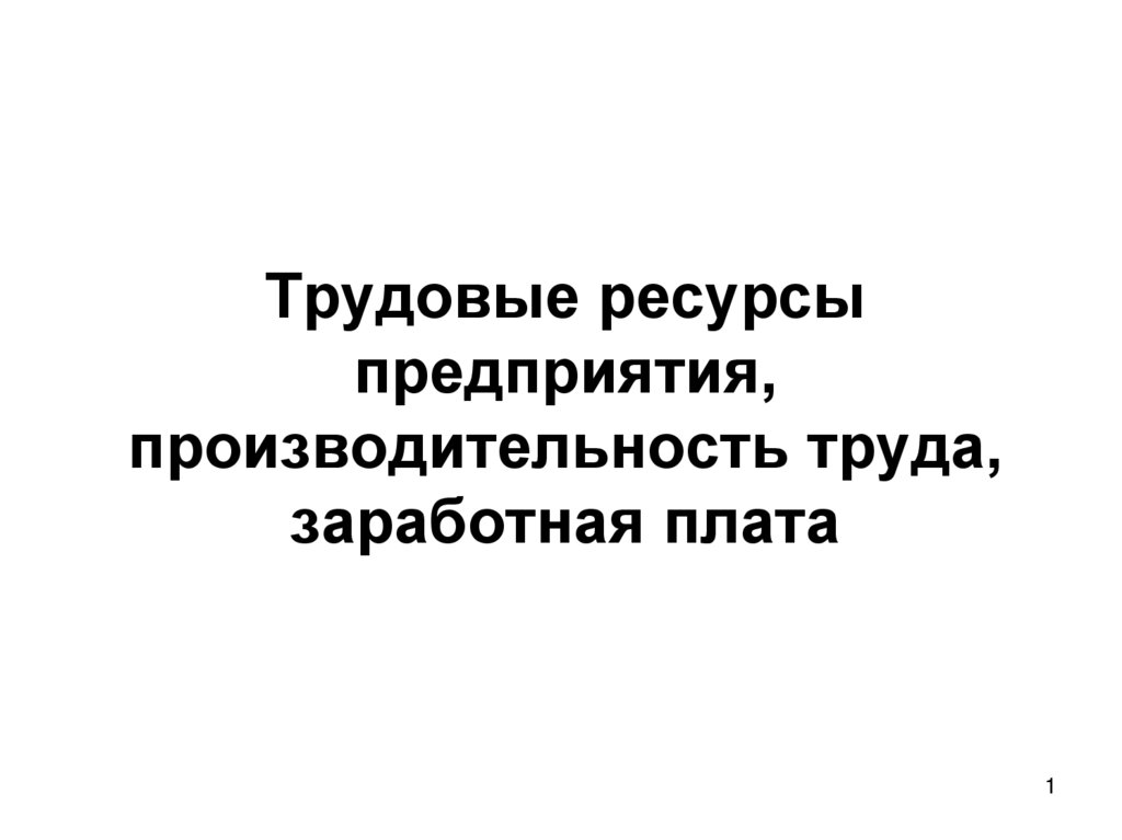 1. Трудовые ресурсы предприятия, производительность труда, заработная плата