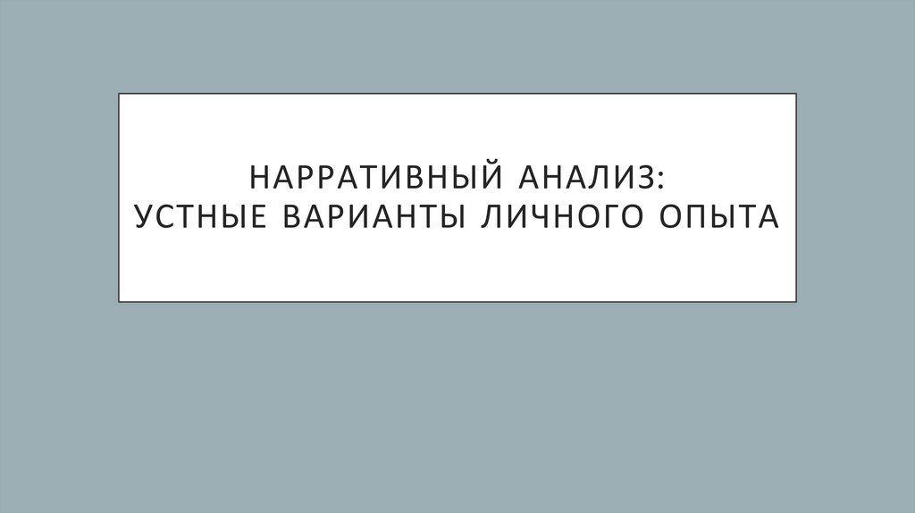 НАРРАТИВНЫЙ АНАЛИЗ:УСТНЫЕ ВАРИАНТЫ ЛИЧНОГО ОПЫТА