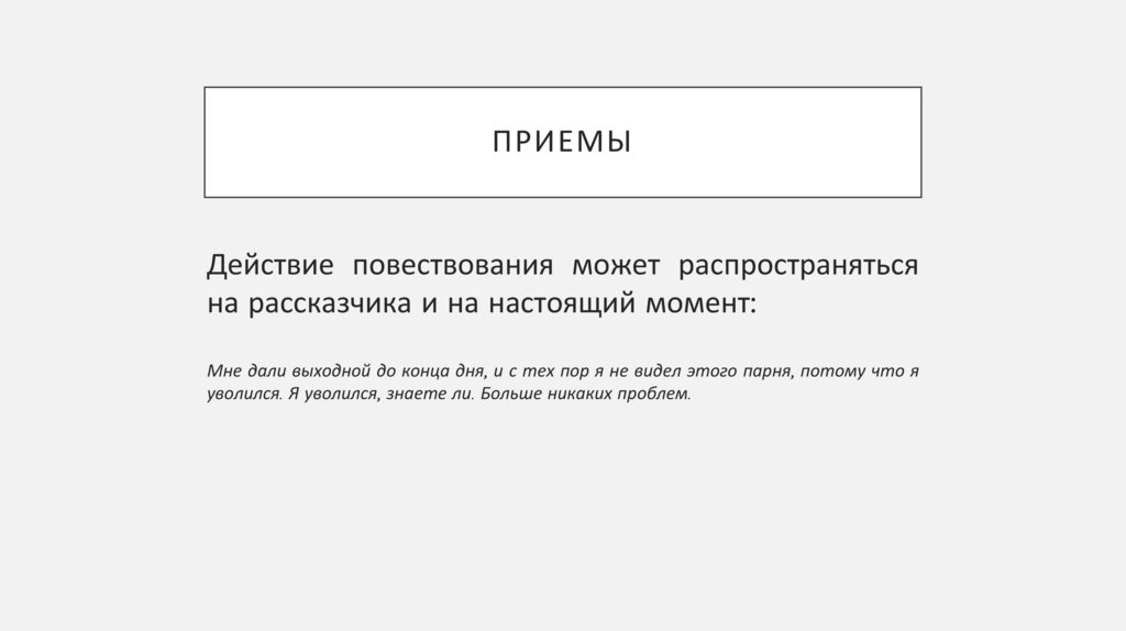 настоящем моменте времени и указываем на конец повествования, идентифицируя