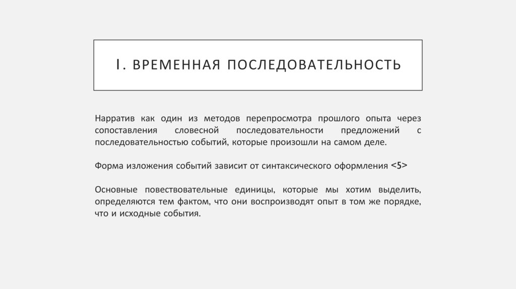 1. ВРЕМЕННАЯ ПОСЛЕДОВАТЕЛЬНОСТЬНарратив как один из методов перепросмотра прошлого опыта через