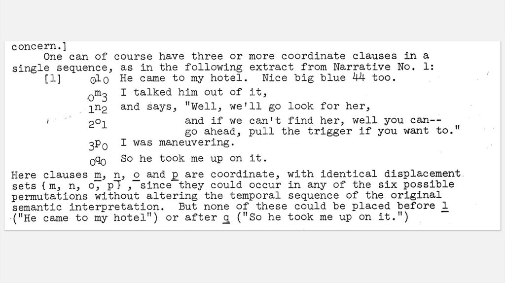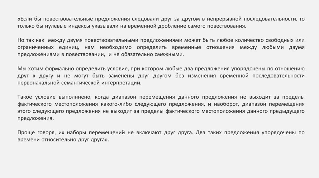 «Если бы повествовательные предложения следовали друг за другом в непрерывной последовательности, тотолько бы нулевые индексы указывали на временной дробление самого повествования.