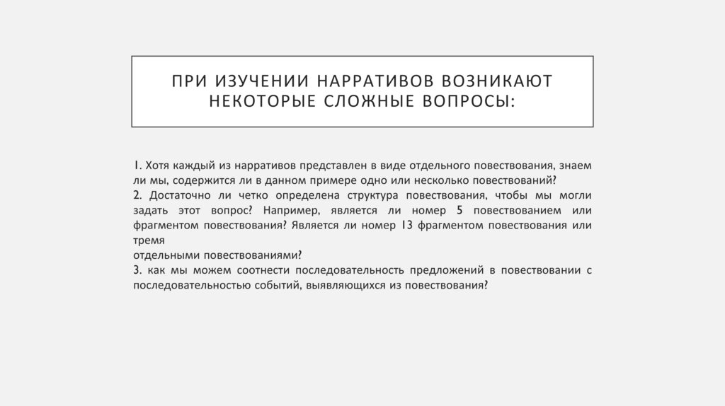 ПРИ ИЗУЧЕНИИ НАРРАТИВОВ ВОЗНИКАЮТНЕКОТОРЫЕ СЛОЖНЫЕ ВОПРОСЫ: