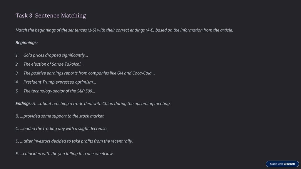 Task 3: Sentence MatchingMatch the beginnings of the sentences (1-5) with their correct endings (A-E) based on the information from the article.