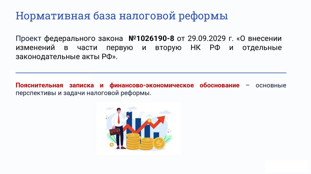 Нормативная база налоговой реформыПроект федерального закона №1026190-8 от 29.09.2029 г. «О внесении