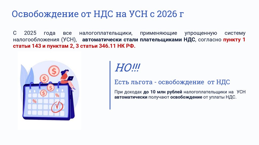 Освобождение от НДС на УСН с 2026 гС 2025 года все налогоплательщики, применяющие упрощенную систему