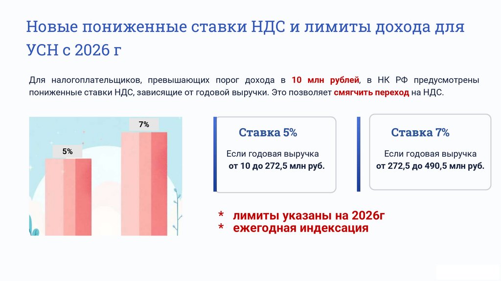 Новые пониженные ставки НДС и лимиты дохода дляУСН с 2026 г