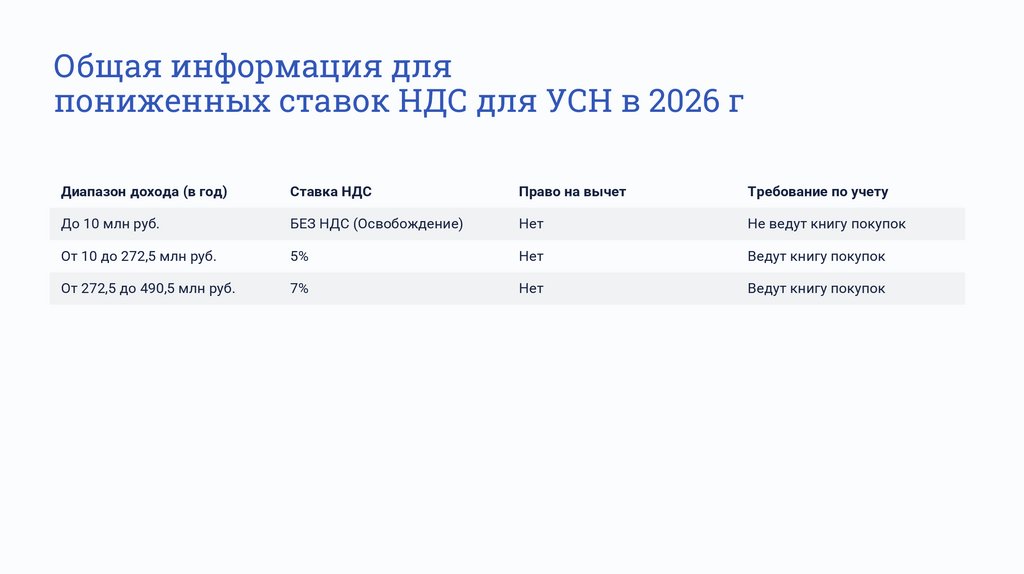 Общая информация дляпониженных ставок НДС для УСН в 2026 г