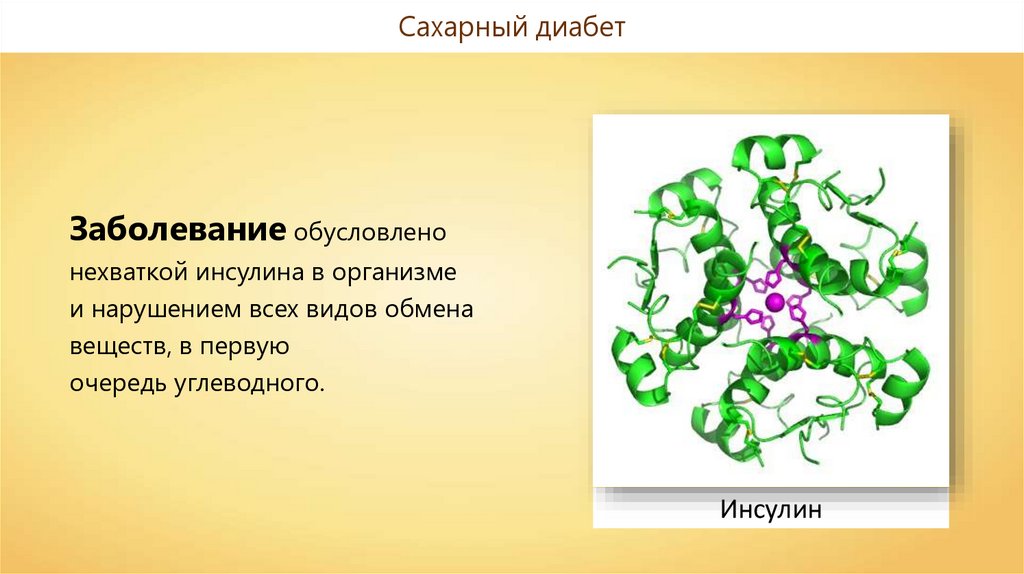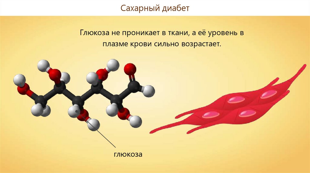 Сахарный диабетГлюкоза не проникает в ткани, а её уровень в