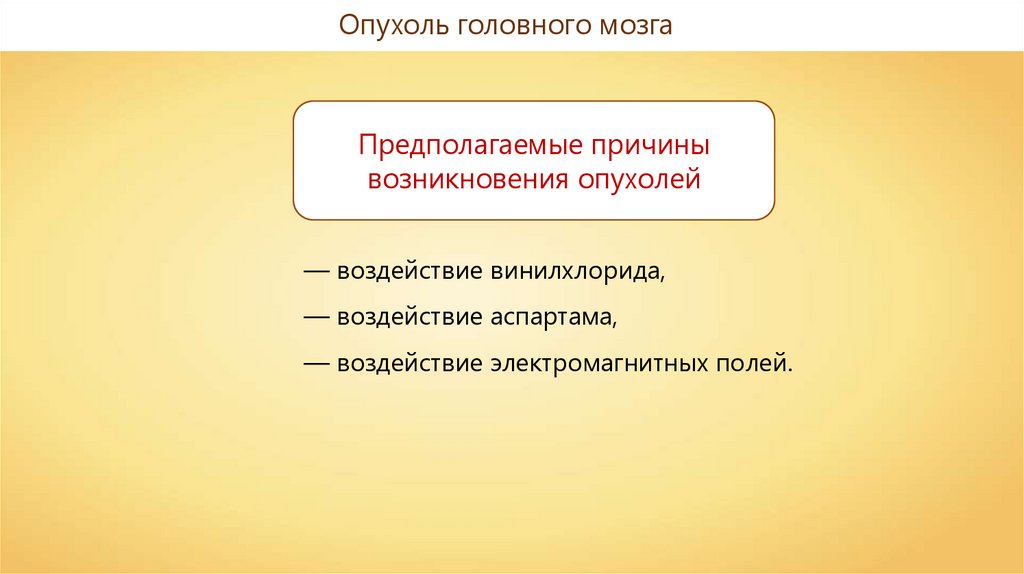 Опухоль головного мозгаПредполагаемые причины