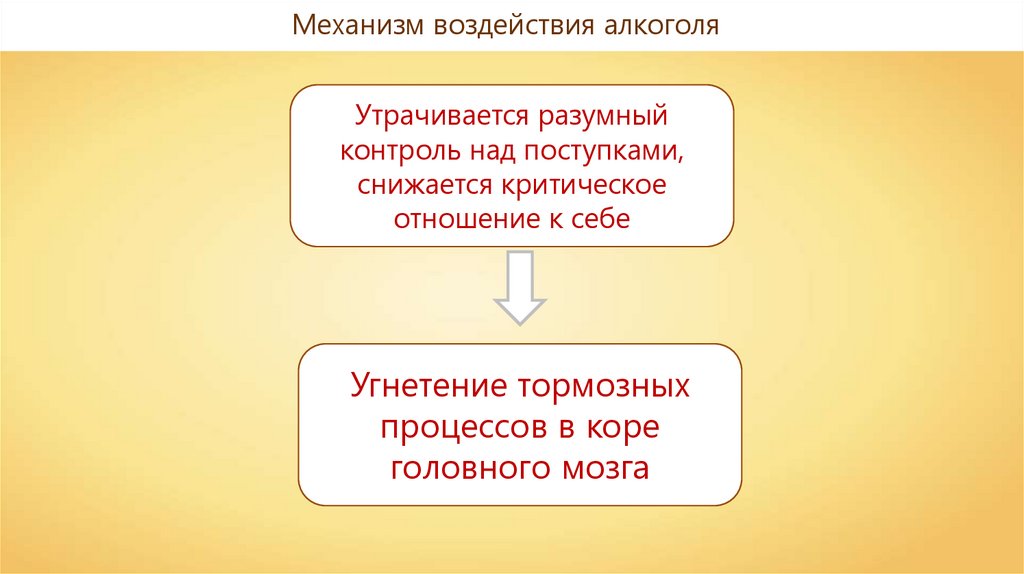 Механизм воздействия алкоголяУтрачивается разумный