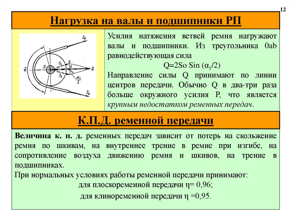 9. НАГРУЗКА НА ВАЛЫ И ПОДШИПНИКИ РЕМЕННОЙ ПЕРЕДАЧИ