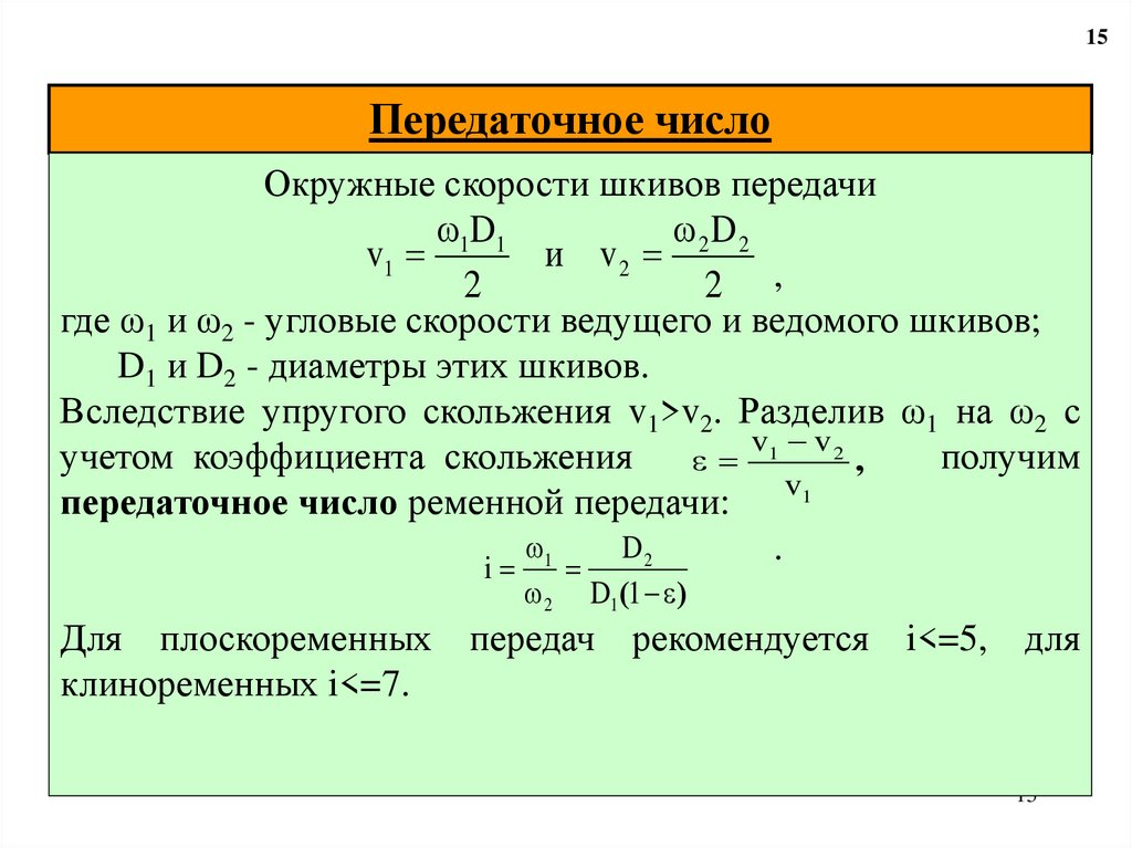 15. РАСЧЕТ РЕМЕННЫХ ПЕРЕДАЧ ПО ТЯГОВОЙ СПОСОБНОСТИ И НА ДОЛГОВЕЧНОСТЬ