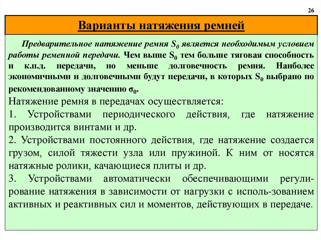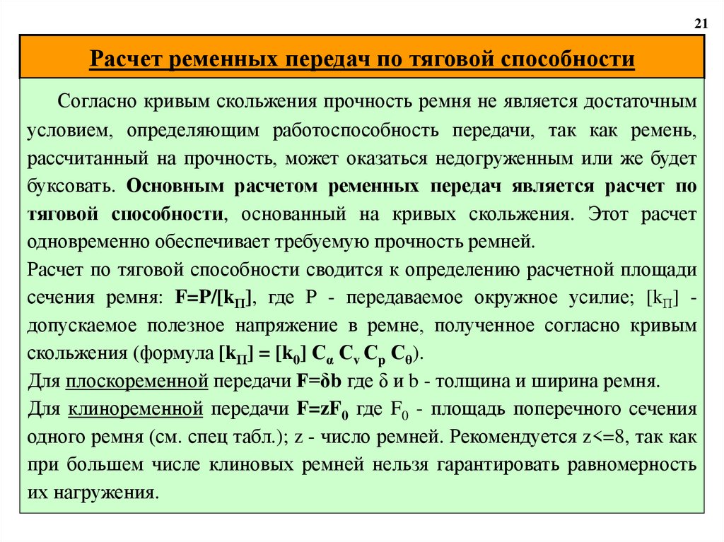 7. КРИТЕРИИ РАБОТОСПОСОБНОСТИ РЕМЕННЫХ ПЕРЕДАЧ