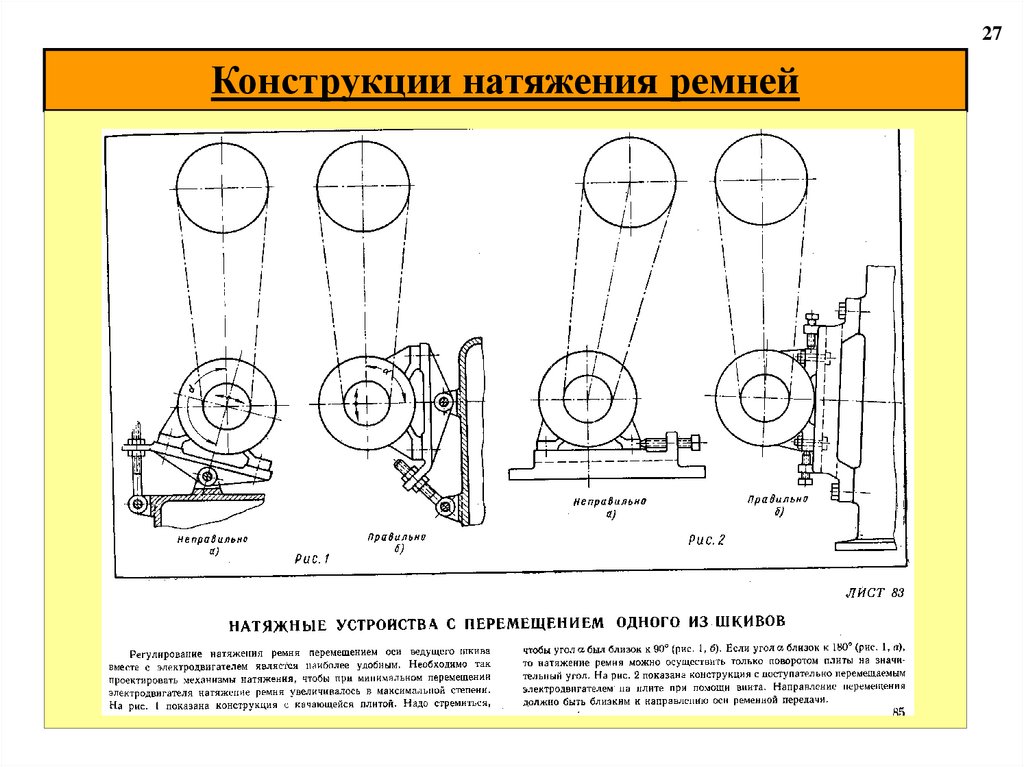 4. Для создания натяжения ремня конструкция должна допускать изменение межосевого расстояния в сторону