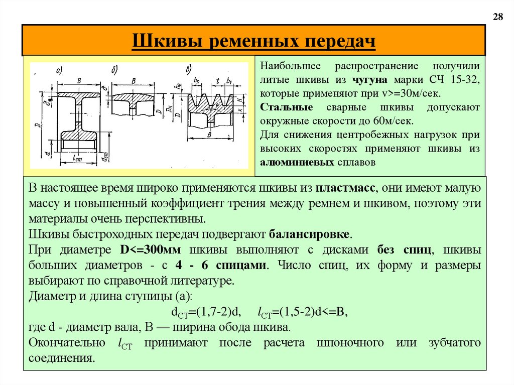 В настоящее время широко применяются шкивы из пластмасс, они имеют малую
