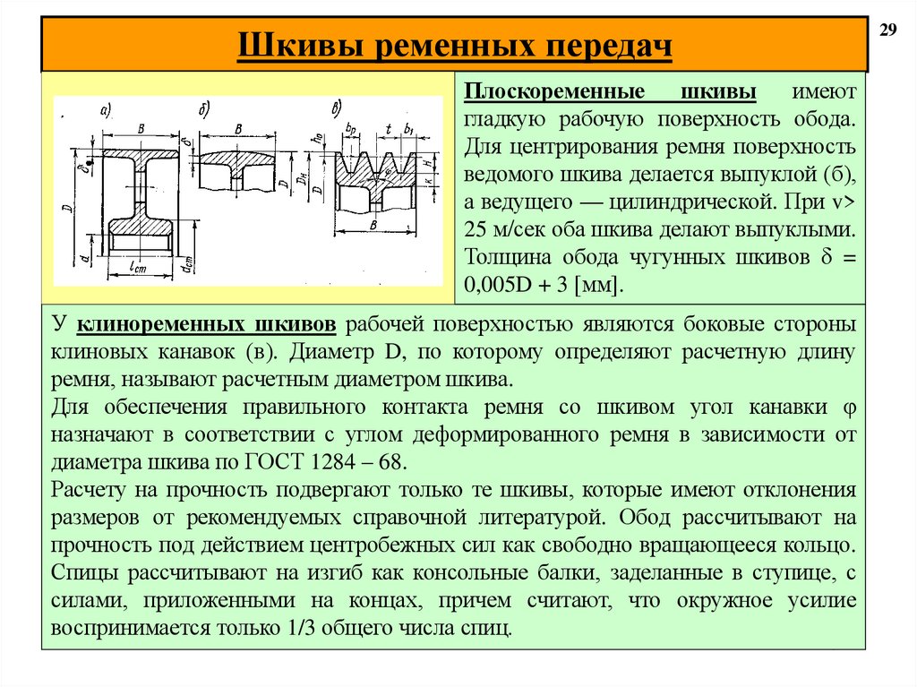 Расчету на прочность подвергают только те шкивы, которые имеют отклонения