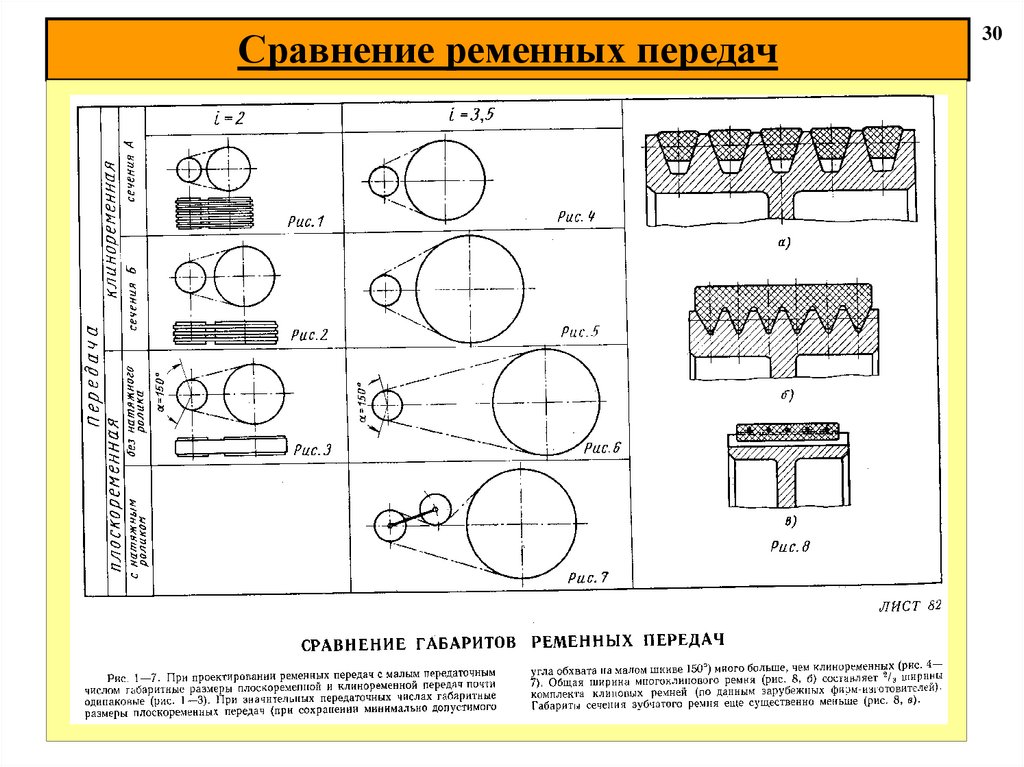 19. СРАВНЕНИЕ ВАРИАНТОВ РЕМЕННЫХ ПЕРЕДАЧ И КОНСТРУКЦИИ ИХ ПРИМЕНЕНИЯ