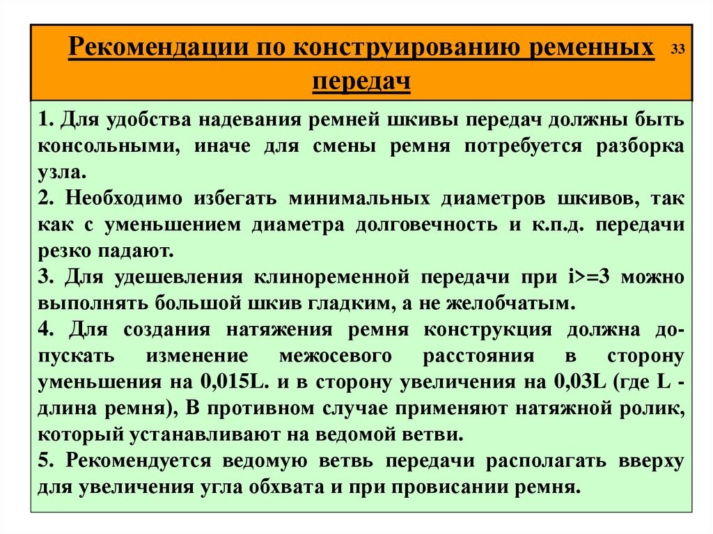 5. Рекомендуется ведомую ветвь передачи располагать вверху
